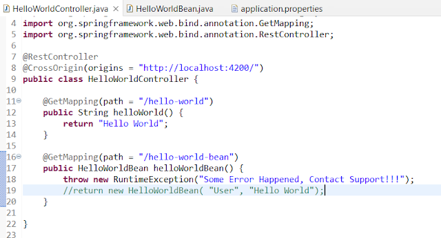 In This topic we will refactor our code for better readability. Refactor JAVA Code : Let's start with JAVA Code so you can see in previous few topic we have added cross origin annotation in each controller to call API from Angular application. what will happen if you have lots of Controller then there will a chance we miss adding it. So what we will do ? For now we will add a bean in RestWebserviceApplication.class which will handle cross origin. We are going to use WebMvcConfigurer and will override addCorsMappings as per our project needs. WebMvcConfigurer : It is an Interface which is used to customized JAVA Configuration for spring MVC enabled project. addCorsMappings/ CorsRegistry : It is a default method provided by WebMvcConfigurer to configure global cross origin request. Update your code as shown below and once you add this you can remove CrossOrigin annotation from Controller class. Check from UI if your application is working fine after th...